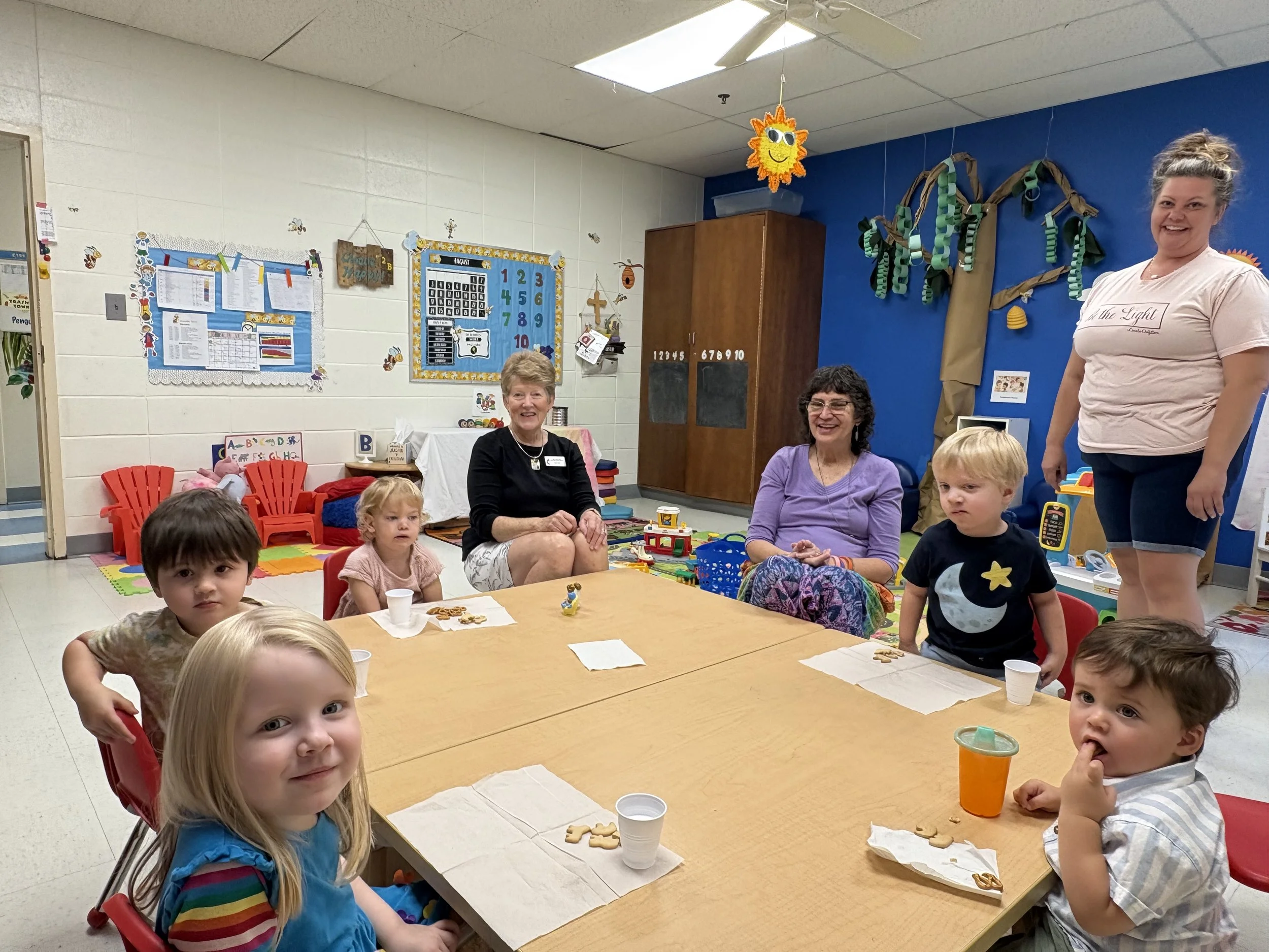Our Nursery classrooms also remain open for 2-4 year olds during services immediately following Sunday School, where they can enjoy playtime with friends and begin to learn about God through stories and songs.