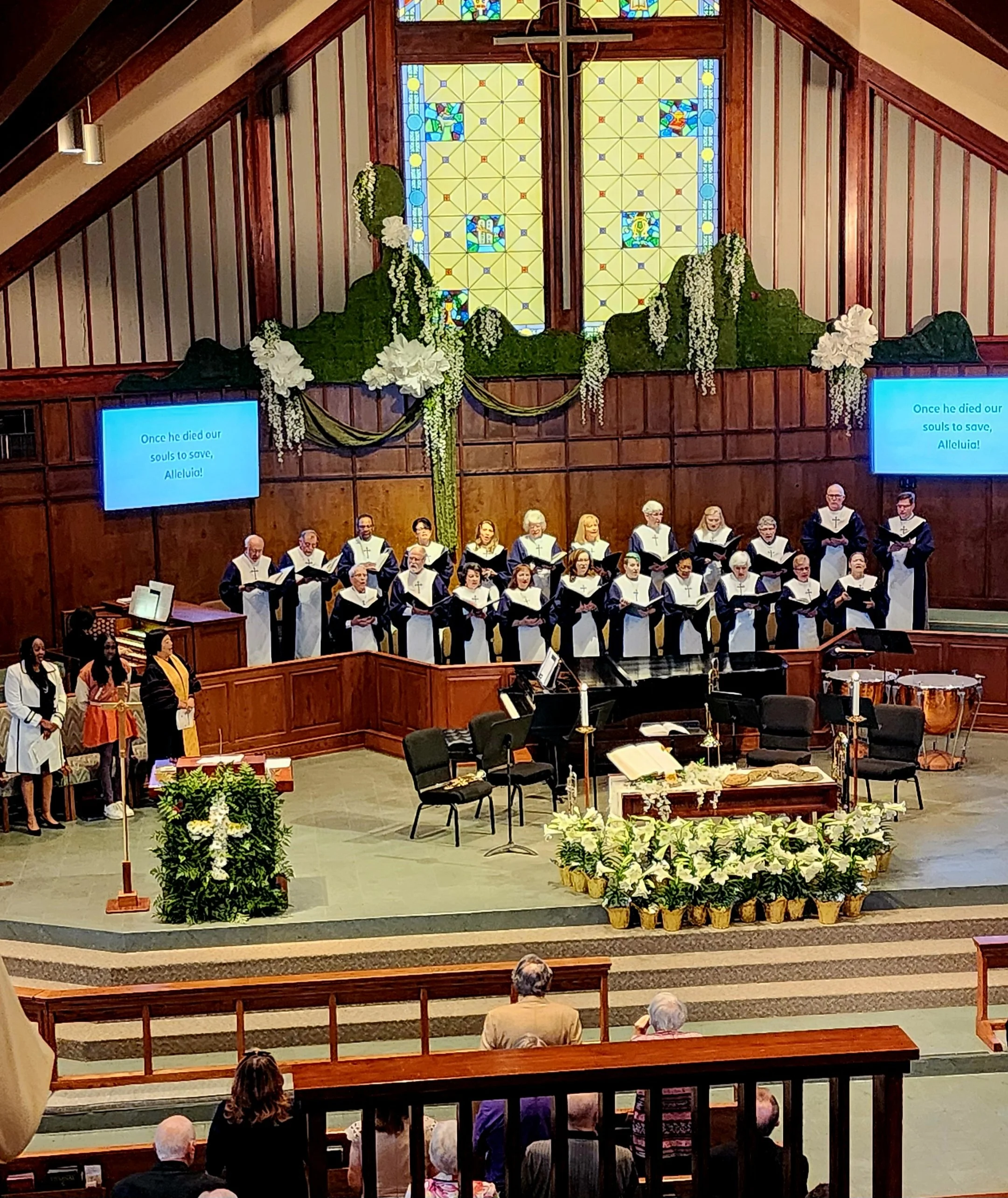 Our Unified worship experiences take place in either the Sanctuary or Family Life Center on Sundays at 11:00am. The services alternate or combine worship styles depending on the focus of the day. Song lyrics, prayers, and other liturgy are viewable on our screens so you can sing along and/or engage with worship however you feel most comfortable. The purpose is to gather the whole community together for a Sunday focused on unity in Christ and the fellowship of our church body.